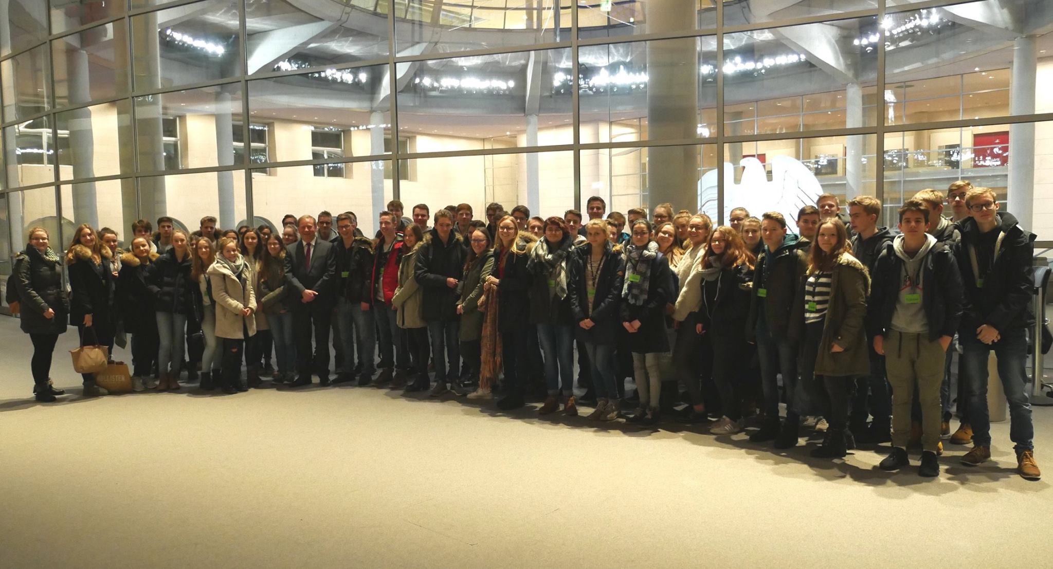 Erste Sitzungswoche 2018 und schon ist die erste Schulklasse zu Besuch in Berlin: Am Beginn des neuen Jahres begrüßte der CDU-Bundestagsabgeordnete 70 Schülerinnen und Schüler des Leibniz-Gymnasiums aus Bad Schwartau im Bundestag. Nach einem Vortrag auf den Besucherrängen des Plenums nahm sich Gädechens viel Zeit, den Schülerinnen und Schülern persönlich Rede und Antwort zu stehen und sie über seine politische Arbeit in Berlin und in seinem Heimatwahlkreis zu informieren.
